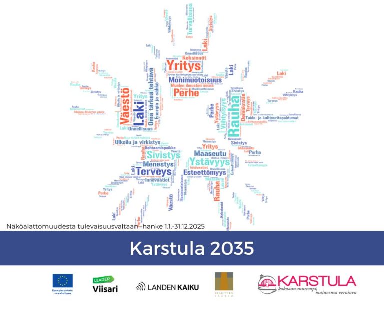 Karstulassa 2035 arvostetaan monimuotoisuutta, yhteisöllisyyttä ja omavaraisuutta. Tulevaisuus rakentuu merkityksellisyyden, hyvinvoinnin ja innovaatioiden varaan, yhdistäen perinteet ja uudistumisen. Tulevaisuuden Karstulassa uskalletaan olla rehellisesti maalaisia ja viestiä erilaisista tavoista elää omannäköistä elämää.